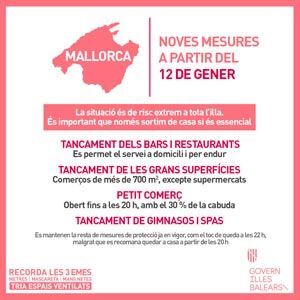 Las medidas se detallarán en el acuerdo de Consell de Govern que se aprobará el lunes; entrarán en vigor el martes y serán vigentes 14 días, hasta el 26 de enero.