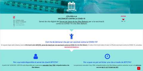El Servicio de Salud, con el fin de acelerar el proceso de vacunación contra el COVID-19, puso en marcha el pasado 16 de abril un sistema para solicitar una cita online. Por esta razón creó BITCITA, un sitio web muy intuitivo y fácil de usar, para el que no es necesario ningún entrenamiento previo; basta con acceder a él a través de la URL www.ibsalut.es/cita-previa-vaccinacio-covid-19 y registrarse con el número del documento de identidad o el CIP regional y el año de nacimiento.